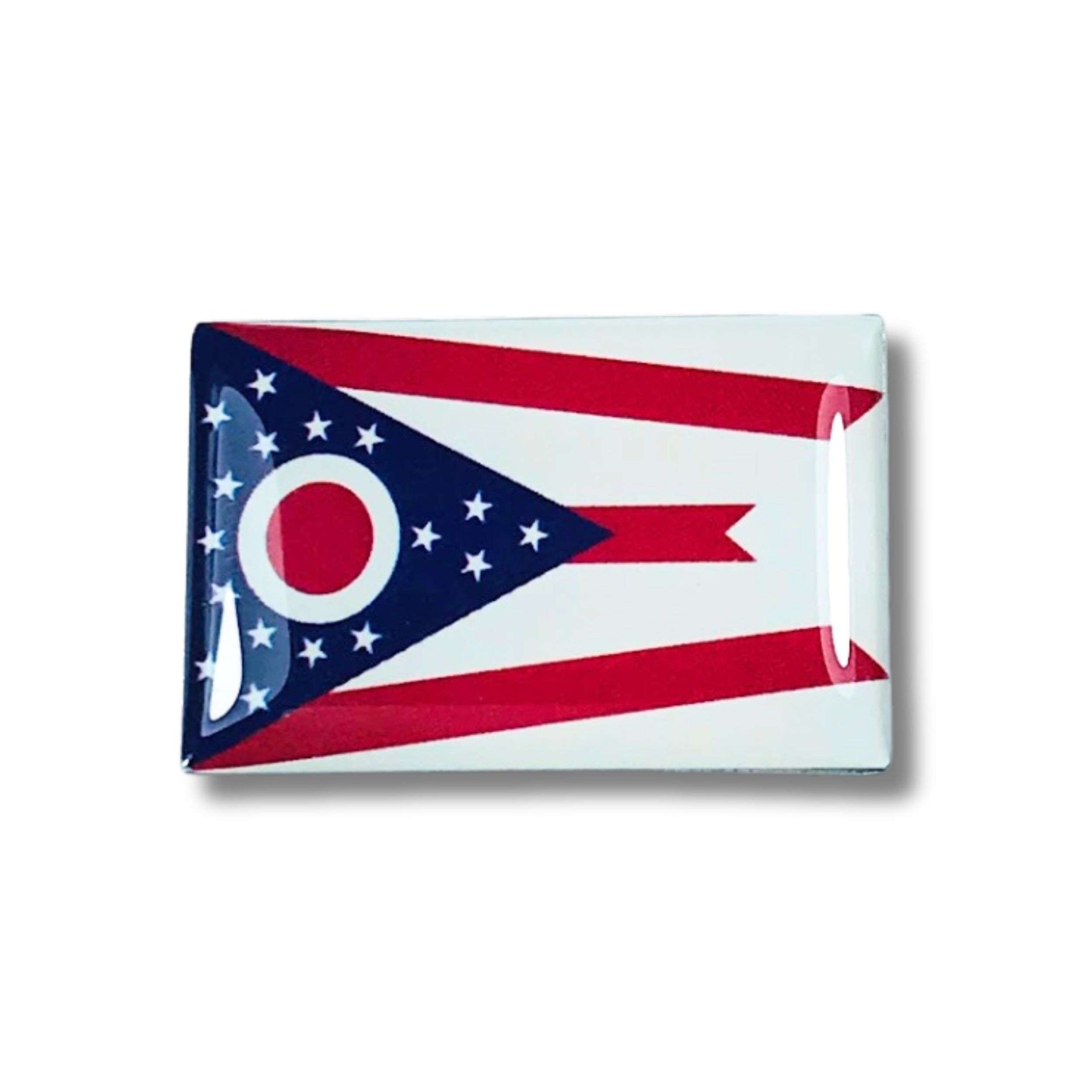Ohio has always stood out for its crucial role in American history, from being the birthplace of presidents to its influence on industry and sports. Its flag, with its unique triangular bubble design, is a vibrant reflection of this rich and diverse heritage. Every color, every line, and every star on this pin tells a story that invites reflection and conversation. By wearing this pin, you join a proud community that celebrates its achievements and looks to the future with hope and determination.