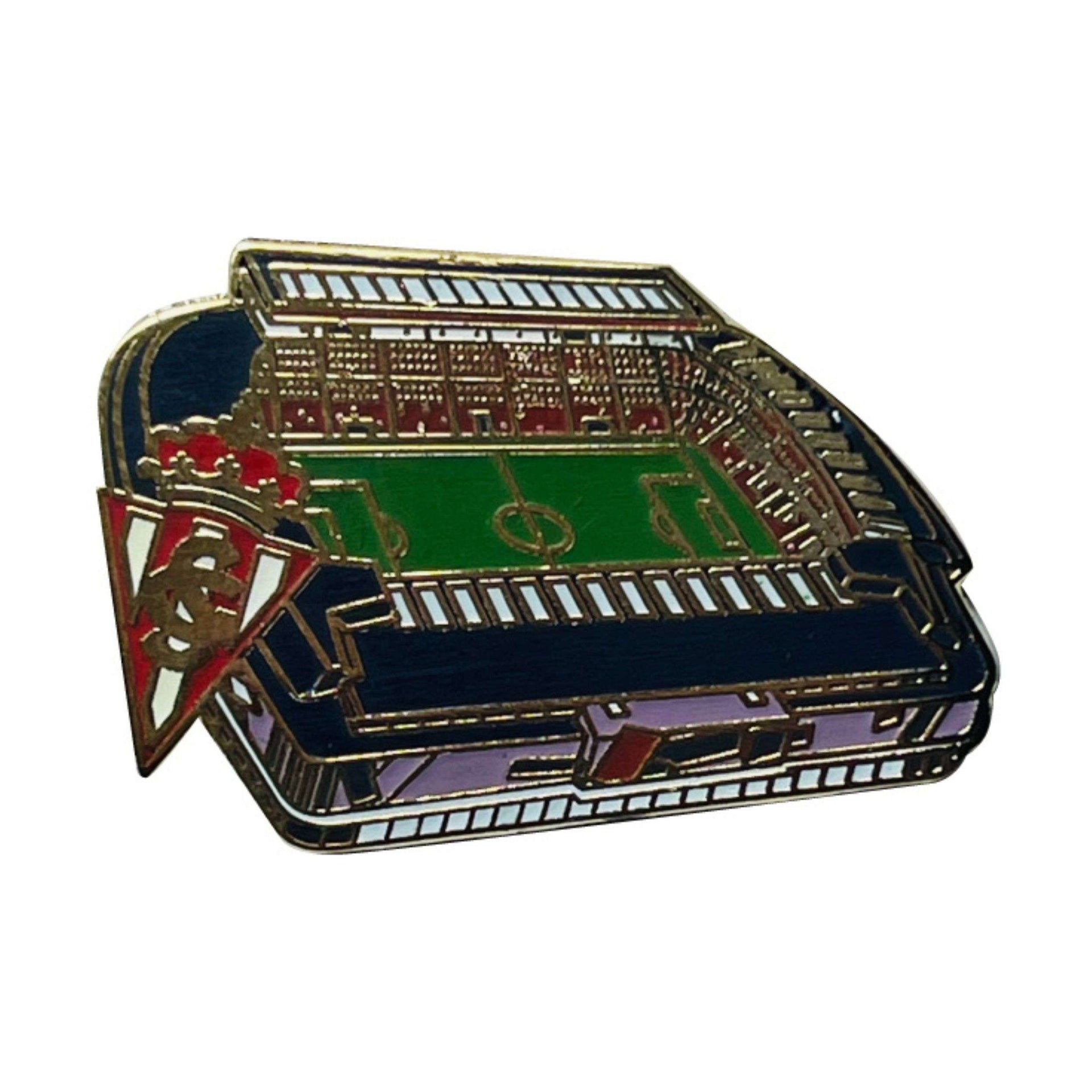 Le stade El Molinón, vieux de plus d'un siècle, est le plus ancien stade de football d'Espagne en activité continue. Sa structure a été témoin de l'évolution du club et du football national. Porter cette épingle rend hommage à cette histoire, aux légendes qui ont défendu le maillot rouge et blanc et aux supporters qui n'ont jamais cessé d'encourager avec une passion infatigable. Chaque détail de la conception rappelle l'architecture emblématique du stade, ses tribunes et le rythme vibrant des jours de match.