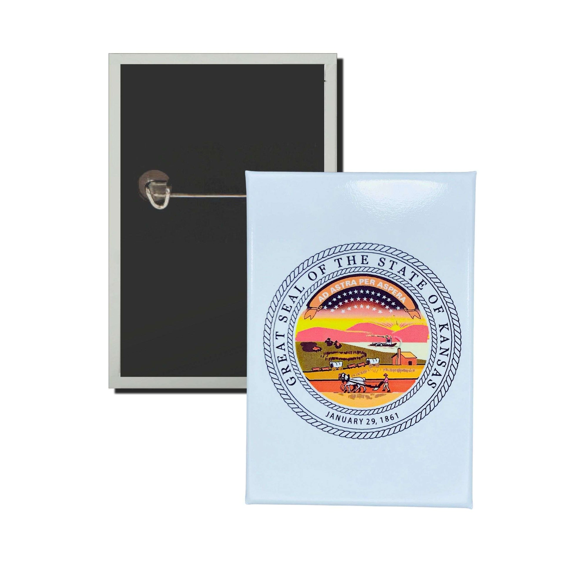Perfecta para quienes asisten a eventos culturales, ferias, reuniones patrióticas o celebraciones estatales, esta chapa añade un toque de autenticidad y respeto hacia el legado de Kansas. Puedes usarla en tu vestimenta o colocarla en objetos personales para mostrar tu orgullo sin importar dónde estés.