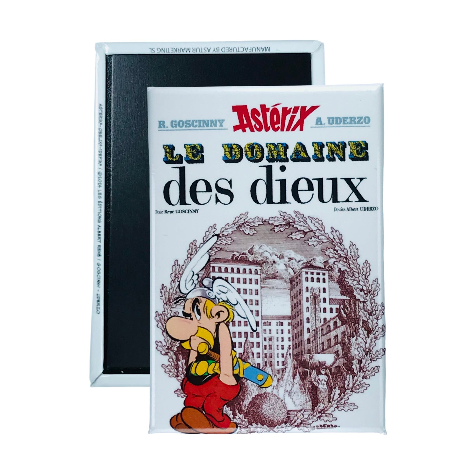 Desde su primera aparición, Astérix ha sido un emblema de resistencia y camaradería. Le Domaine des Dieux, publicado en 1971, aborda la confrontación entre la cultura gala y el imperio romano con un humor lleno de crítica social. Este imán busca transmitir esa energía a través de su portada, cuidando cada detalle gráfico para respetar la obra original de sus creadores, Albert Uderzo y René Goscinny. Los elementos equilibrados entre personajes, arquitectura y colores vivos hacen de este imán una pieza que no solo decora, sino que invita a la reflexión y la nostalgia.