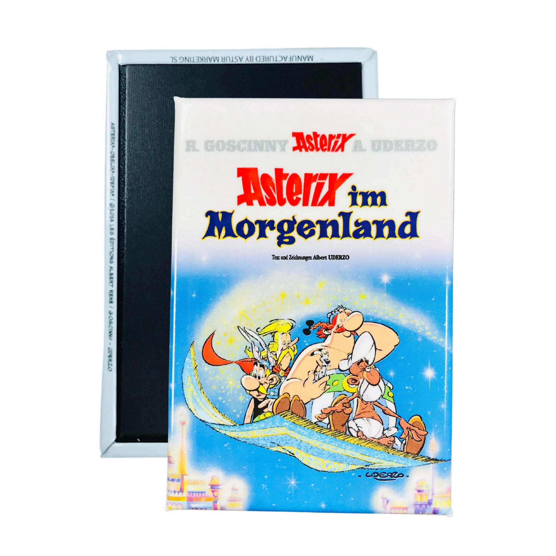 Adéntrate en el fascinante mundo de Astérix con el IMAN © 28 - Asterix im Morgenland - Portada Comic - Alemán - A#348, una pieza exclusiva que captura con máxima fidelidad la esencia y el espíritu aventurero de esta emblemática saga cómica. Esta obra magnética representa mucho más que un simple accesorio decorativo: es una ventana directa a la mágica y divertida travesía de Astérix y Obélix en tierras orientales, donde la historia, el humor y la cultura se entrelazan para crear un relato inolvidable.