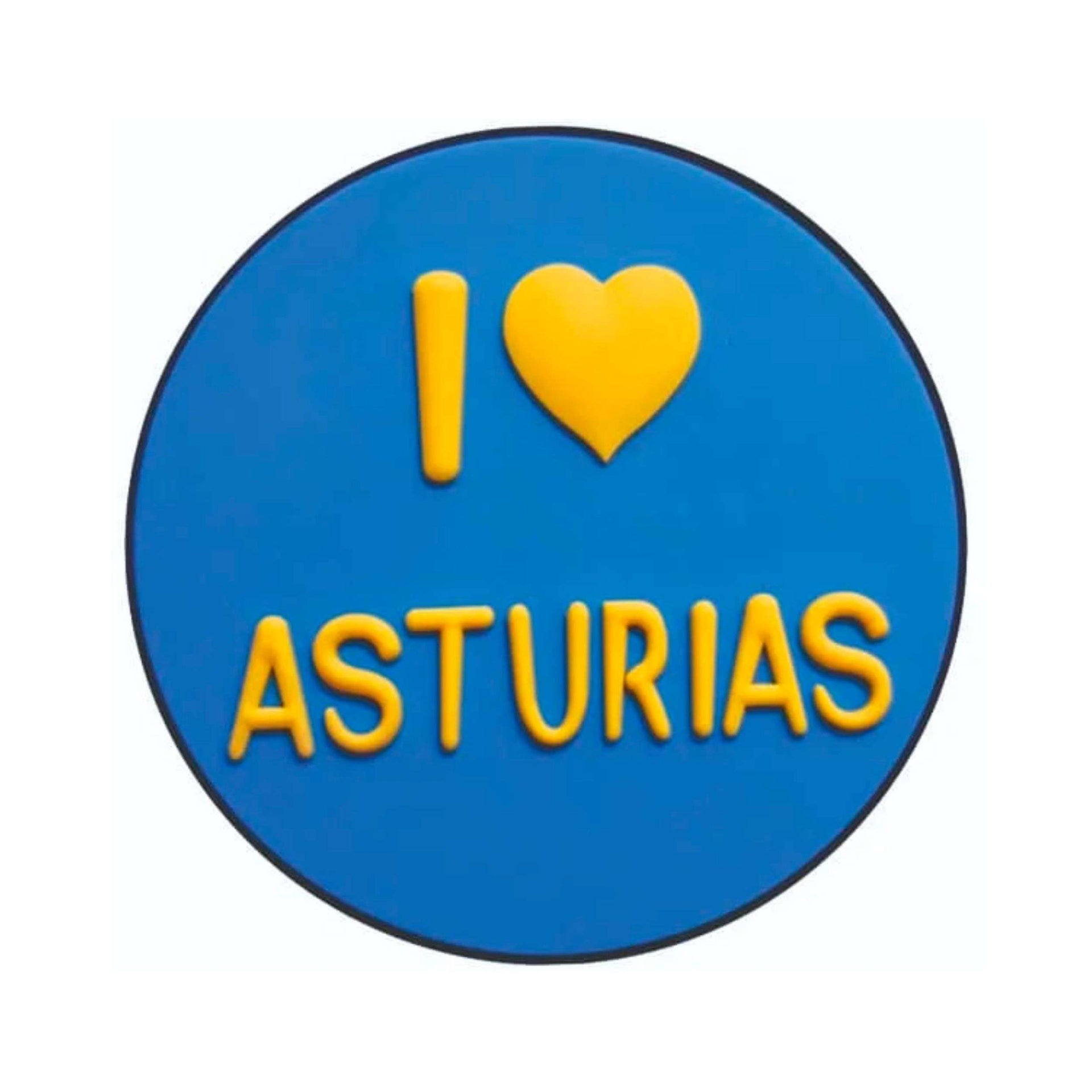 El diseño de este imán incluye colores vivos que recuerdan el verde de los bosques y el azul de las aguas asturianas, acompañado de la frase "I Love Asturias" en una tipografía clara y amigable que transmite un mensaje de cariño universal. Cada detalle ha sido pensado para que, al mirarlo, sientas la brisa marina o la tranquilidad de un paseo por el campo asturiano.