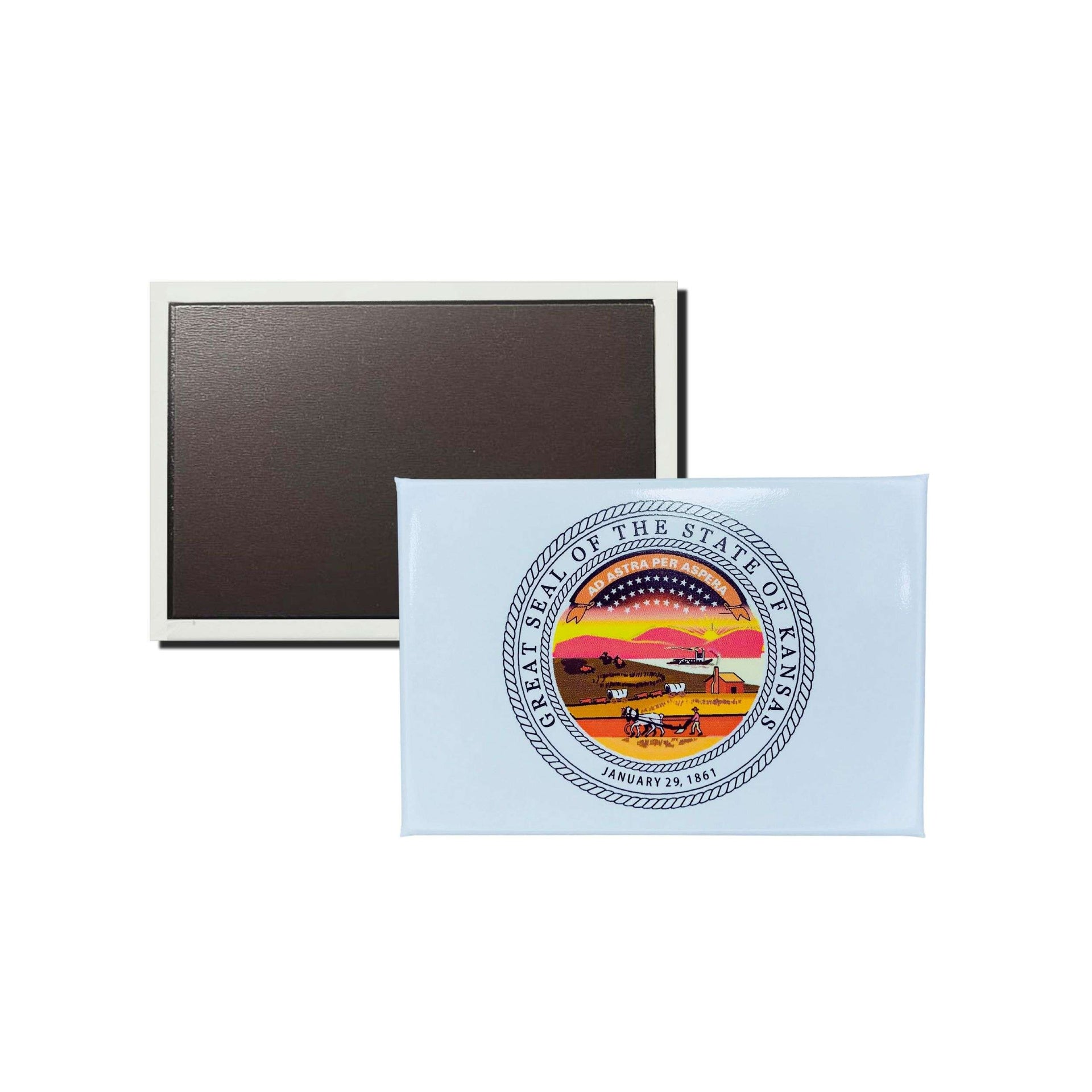 Desde las vastas praderas hasta los monumentos históricos que narran la rica trayectoria del medio oeste americano, el estado de Kansas se presenta como un símbolo de orgullo, perseverancia y tradición. 🌾🏞️ Conocido como el "Estado del Girasol", Kansas es una tierra donde la historia y la cultura convergen en un paisaje que ha sido testigo de grandes momentos que definieron a los Estados Unidos. Este imán horizontal con el escudo del Estado de Kansas es mucho más que un simple accesorio para tu nevera o espacio de trabajo; es una representación tangible de la identidad del estado y un homenaje a su legado. Este diseño ha sido meticulosamente creado para capturar la esencia de Kansas, ofreciendo un detalle vibrante y auténtico que conecta a quienes lo poseen con la historia, la naturaleza y los valores que caracterizan a esta región.