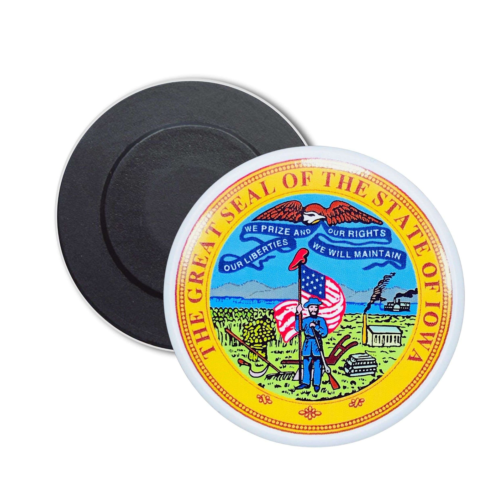 Los regalos que tienen alma y significado son los que permanecen en el tiempo. El Imán Redondo - Escudo Estado Iowa - USA es un detalle ideal para: