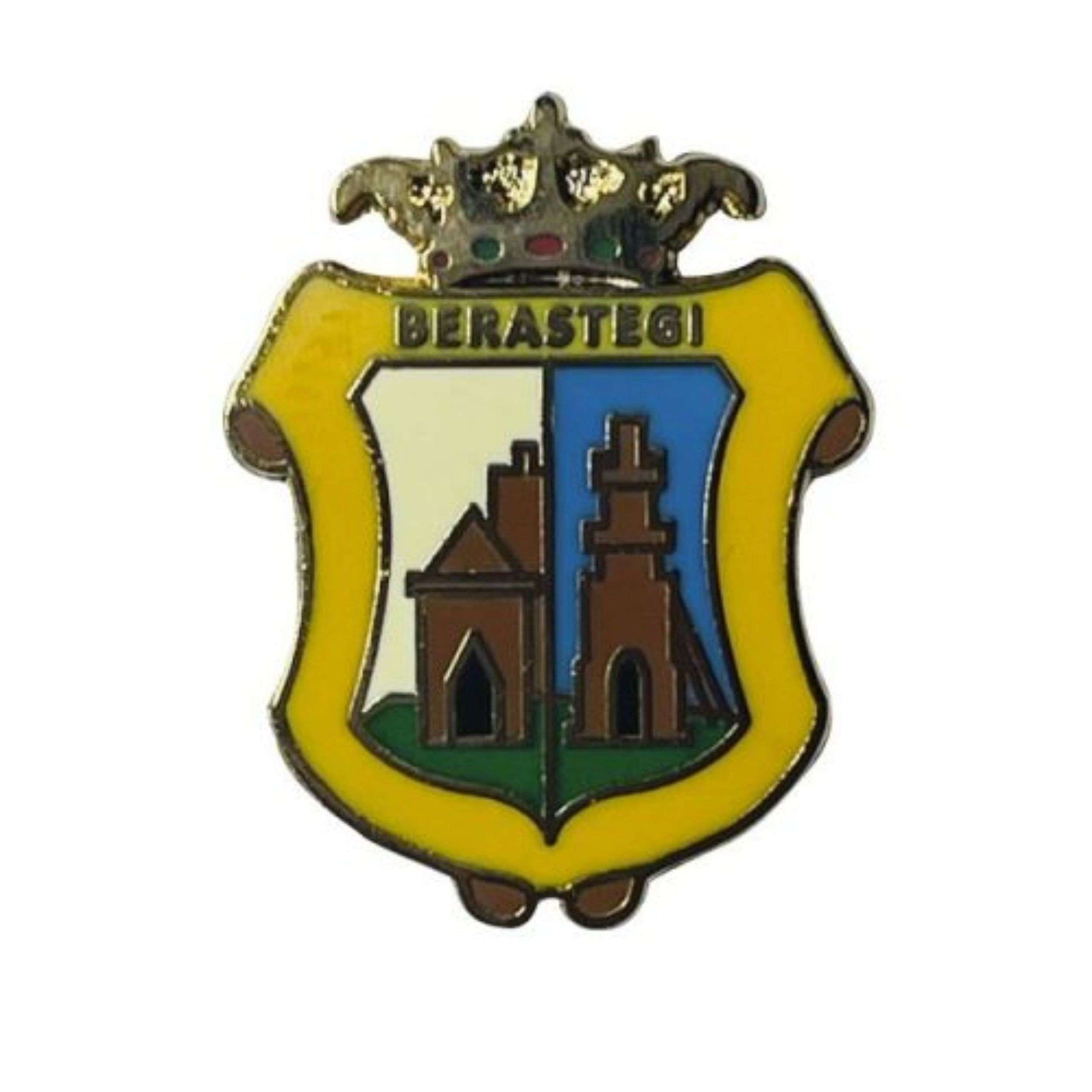 Los colores vibrantes y las figuras geométricas no solo aportan belleza, sino que cuentan una historia que conecta a cada portador con la herencia vasca. El uso del escudo en este pin es un homenaje a la memoria colectiva y a la identidad que define a Berastegi, haciendo de este accesorio un símbolo cargado de valor emocional y cultural.