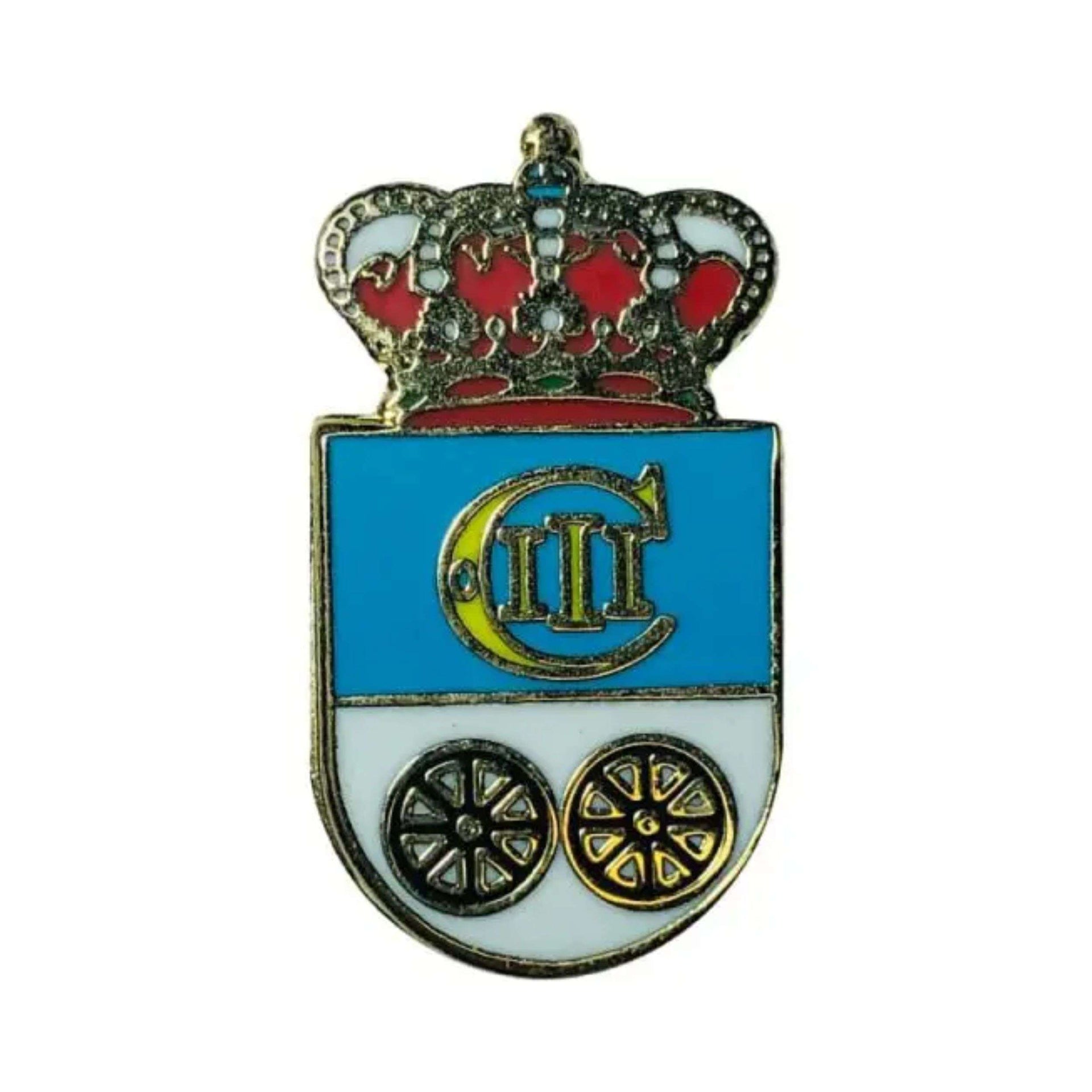 El pin exhibe un diseño artístico que respeta y realza los elementos tradicionales del escudo de Prado del Rey. Los colores, las formas y los relieves han sido cuidadosamente elaborados para ofrecer un acabado impecable que destaca por su calidad y elegancia.