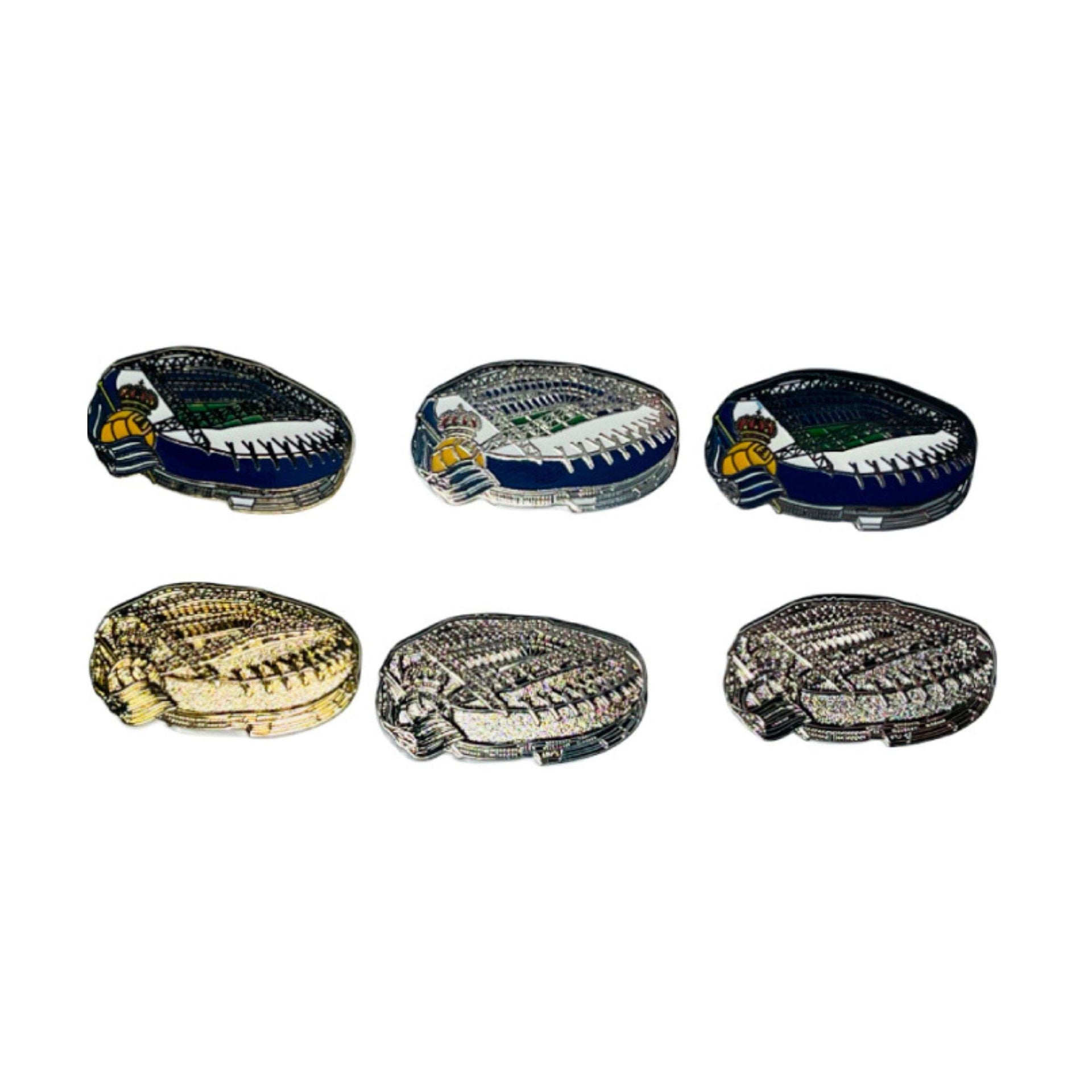 Cada pin de la colección ha sido diseñado meticulosamente para reflejar los detalles más reconocibles y significativos del Estadio Real Sociedad, desde su arquitectura innovadora hasta los colores vibrantes que lo distinguen. La textura, los colores y los acabados se fusionan para ofrecer un producto que no sólo es bello a la vista, sino también un objeto coleccionable que perdurará en el tiempo gracias a su calidad superior.