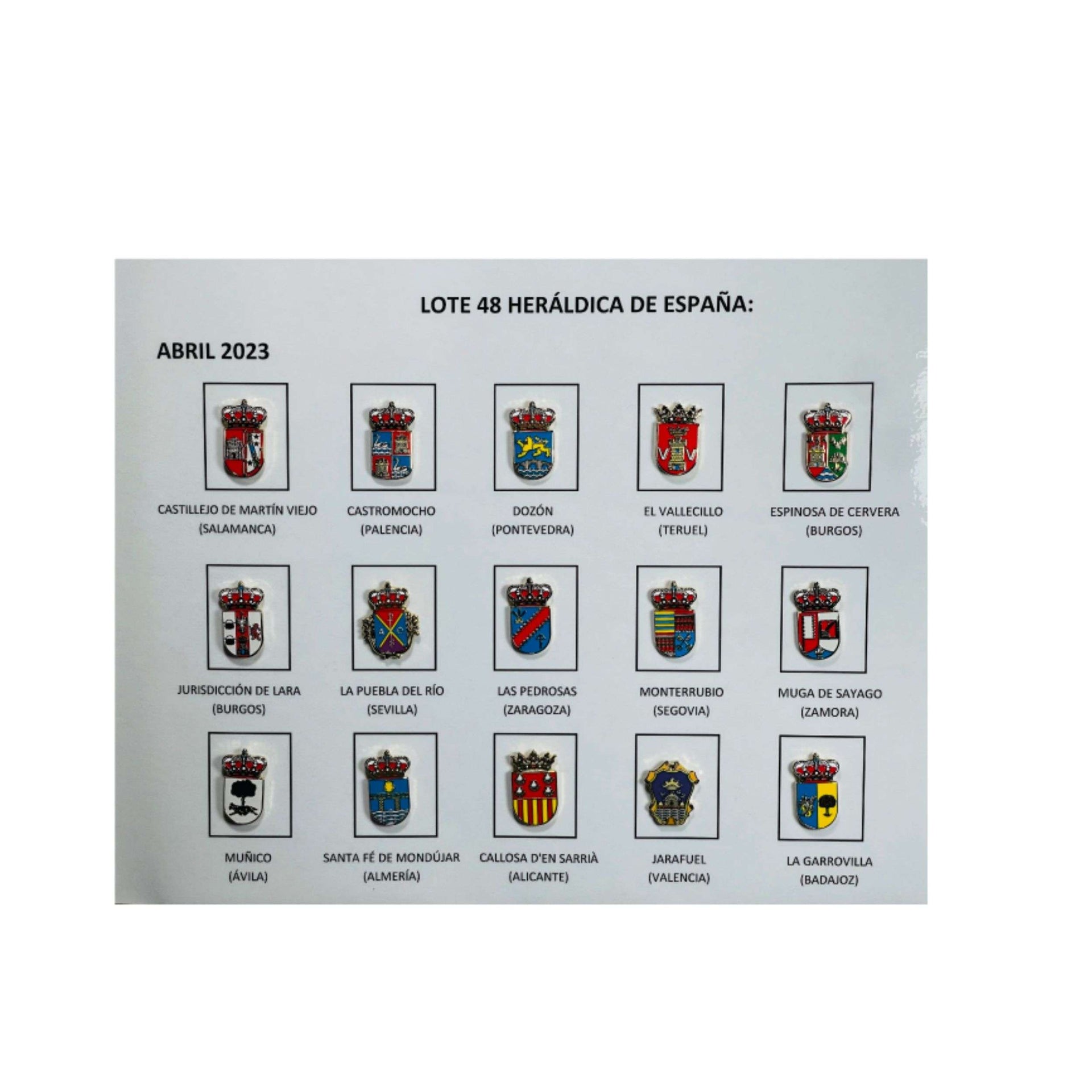 Cada pin del lote está meticulosamente diseñado para capturar la esencia y los detalles únicos que caracterizan a los escudos heráldicos españoles, símbolos que representan linajes, ciudades y valores históricos. Desde la complejidad de los blasones hasta los colores vibrantes que definen cada emblema, esta colección se convierte en una pieza esencial para quienes desean expresar su orgullo y conexión con España de una manera elegante y significativa.