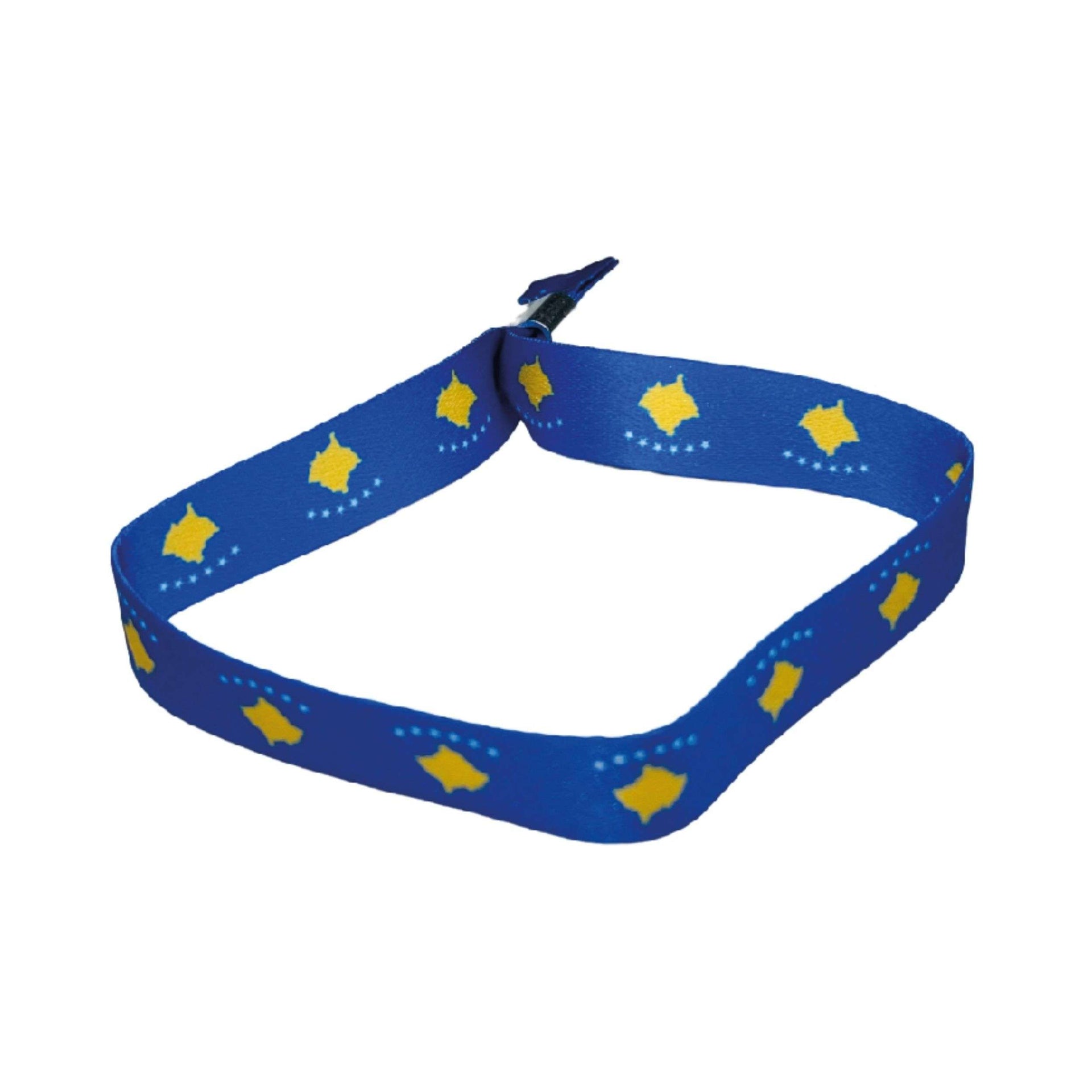 Desde las montañas Rugova hasta las calles históricas de Pristina, Kosovo es una región que inspira un sentido de comunidad y orgullo nacional que se refleja en cada detalle de esta pulsera. Llevarla es una manera de llevar contigo un pedacito de esa pasión y de irradiar un mensaje de amor por tus raíces y por un país que avanza con determinación hacia el futuro. El vibrante azul, amarillo y blanco que adornan la pieza no solo son colores, sino también símbolos de esperanza, libertad y unidad para quienes la lucen.