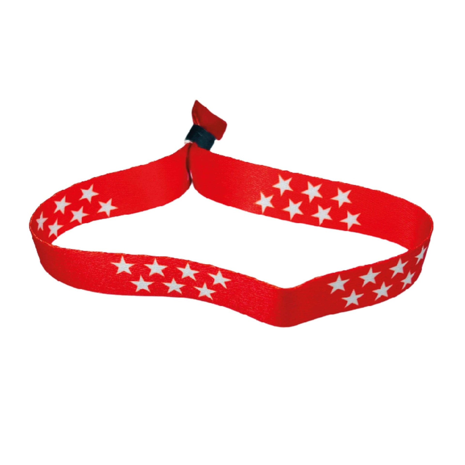 Esta pulsera ha sido diseñada para destacar visualmente sin perder su comodidad. El intenso color rojo es resistente al desgaste y al paso del tiempo, manteniendo siempre su brillo y fuerza. Las estrellas blancas están bordadas con precisión, lo que garantiza que cada detalle sea claro y duradero.