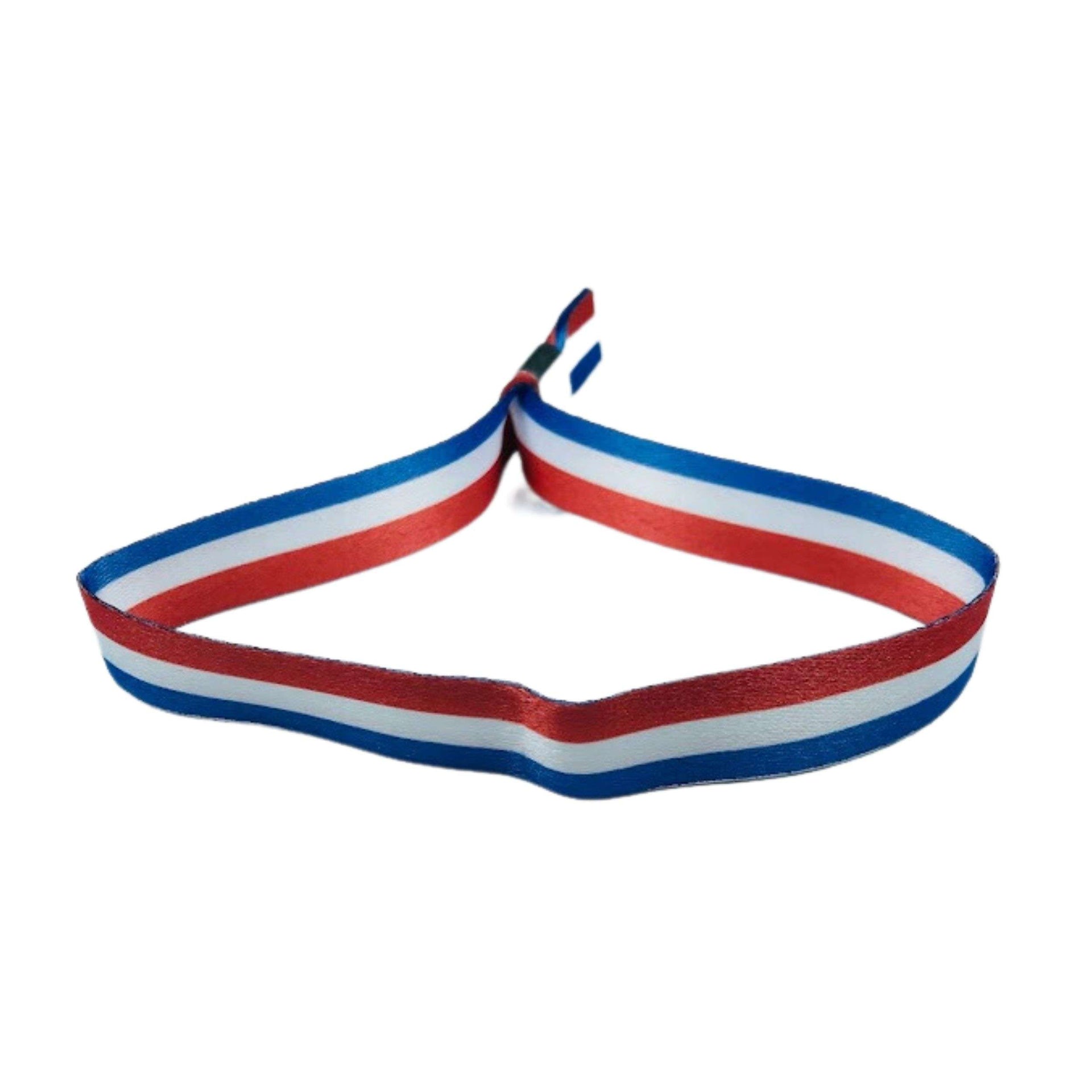 El diseño incorpora los tres colores de la bandera en franjas horizontales perfectamente equilibradas, simbolizando valores fundamentales para los holandeses: libertad (rojo), paz y honestidad (blanco), y lealtad y justicia (azul). Este equilibrio cromático crea un accesorio visualmente atractivo que se destaca por su simplicidad y significado.